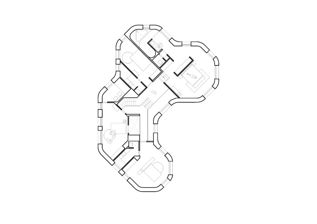 An analysis of the evolution of the shores of the Leman Lake leads us to reconsider the villa’s integration in two main attitudes. The uppermost area of the site, comprising a 19th century annex, will communicate with the access road, creating a private square that over-looks the landscaped patio of the house. While addressing the sensible and poetic lake shore, the house will embrace a new organic language with gentle curves layout and topographic roof profile.