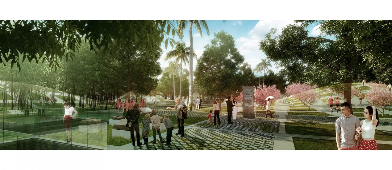 The Archaeological Park of 18 Hoang Dieu has 4 entrances to welcome visitors from all directions. Following the orientation of cultural and tourism development of the city, the main gate will be placed on Hoang Dieu Road in order to connect directly to the Imperial Citadel, creating a cultural and historical ensemble.