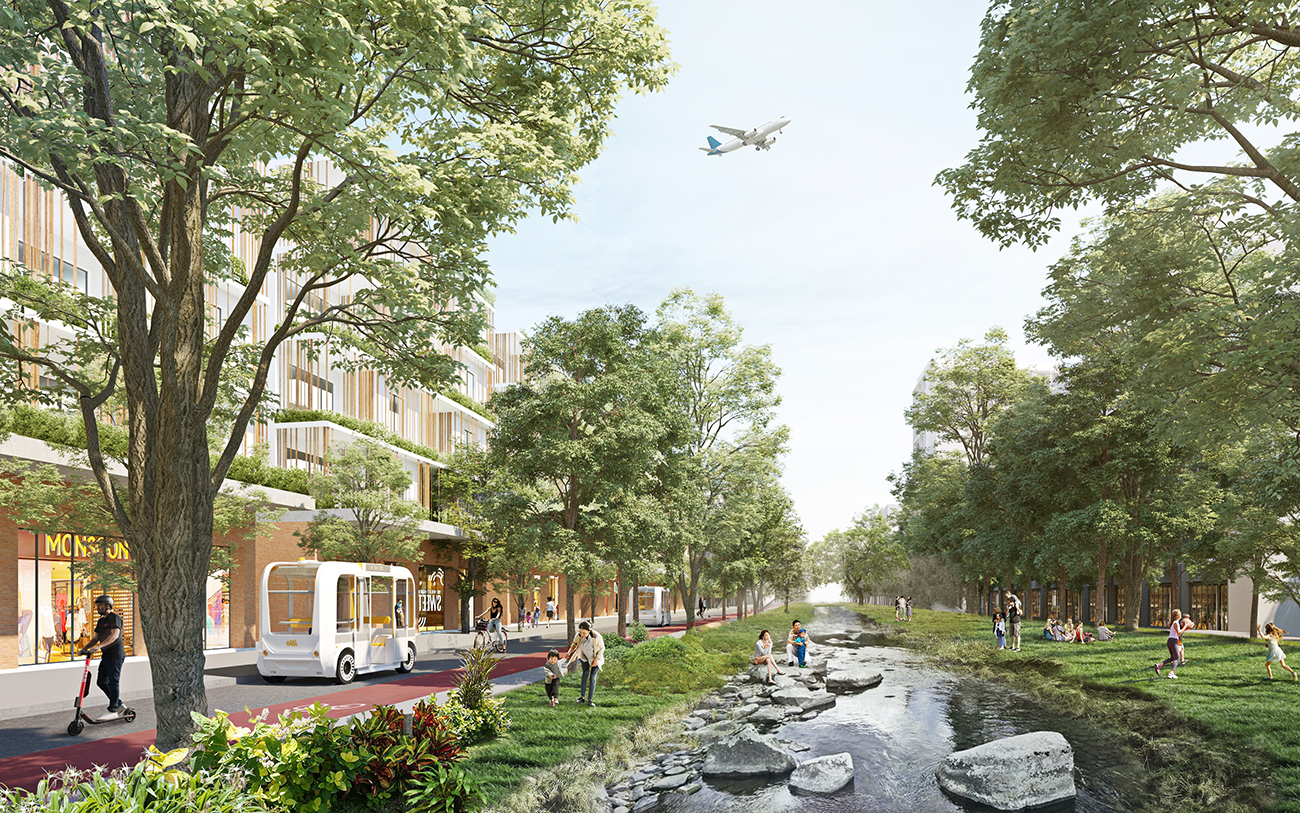 Long Thanh International Airport Aerotropolis is set to become a modern, efficient and culturally significant gateway to Vietnam. Around it, compact mixed-use districts integrate with airport-related industries, business hubs and residential communities; forming the aerotropolis over time. These vibrant areas will bring together workplaces, cultural venues and public spaces, creating an ‘airport city’ that serves