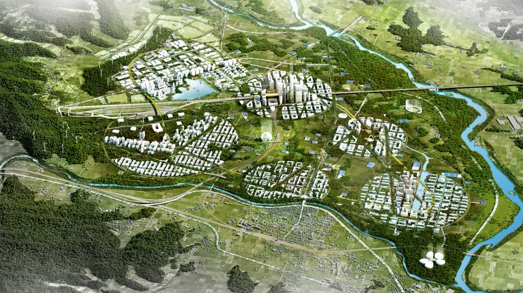 With 900 ha of urban areas combined with 900 ha of open spaces; parks and wild green areas, the New Osong Bio City is poised to become one of the greenest and most attractive place for bio-industry development in Asia. Its strategic central location with national rail links to most major cities and easy access to South Korea International Airport, paves the way for the city to become the future “Mecca” of the bio-industry: a real international business hub for all Asian bio industries. To reach such a level, the project for the new master plan of Osong Bio Valley must aim for the highest possible standards in terms of sustainable urbanism, as well as integrating all social, economic and natural aspects to make it the “place to be” for the bio-industry. Developing high performance infrastructure networks, cohesive neighbourhoods and creating sophisticated working areas in an ecologically sound environment are the goals of this ambitious urban project. Composed by a diversity of clusters and large open green spaces, the Multipolar City is to become the ambassador for the development of bio-technology worldwide.
