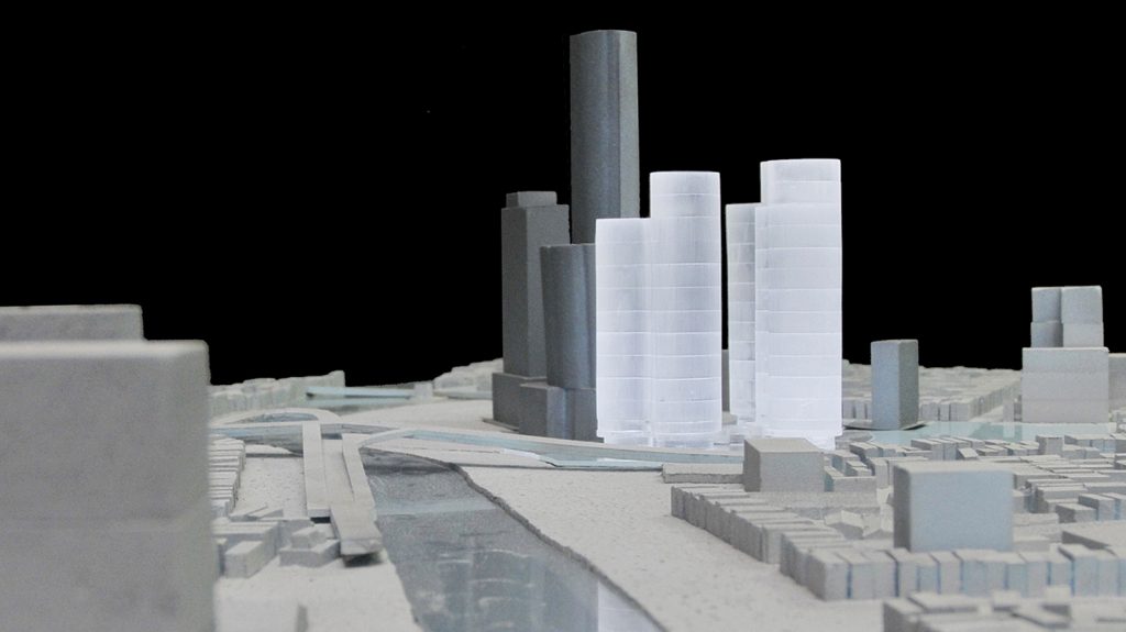 The towers are designed with curves in order to maximize the view for apartments, especially towards the landscape of the main 55 floor tower, where there will be a 5 star hotel. This shape is created on the basis of Ying and Yang theory and also recalls the image of Saigon river with winding branches. Furthermore, the lissomness of the towers is increased by the sun protection system created by extending the slab of 1m to create a shade on the facade. The greenery will animate the facade and brings the building closer to the nature.
